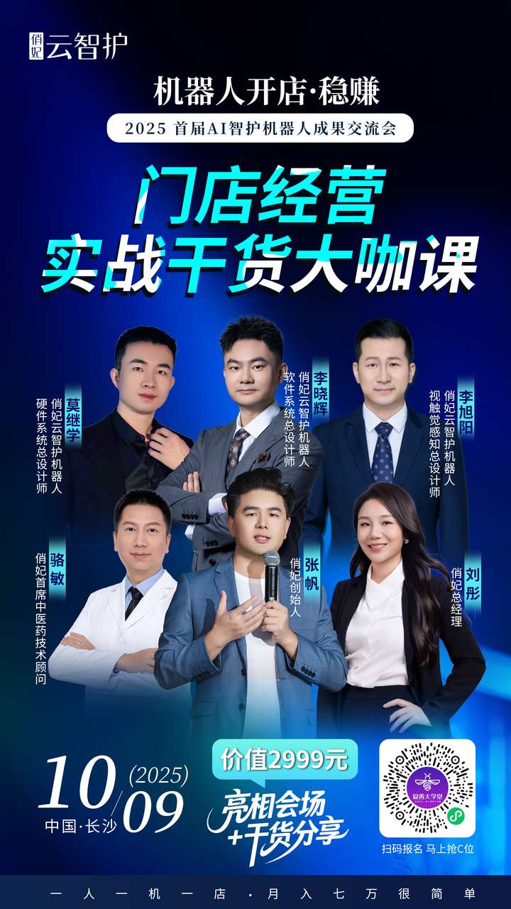 “我们不仅要让健康走进千家万户,更要让每一位创业者,在守护他人健康的同时,做到身体好、家庭好、事业好!”俏妃品牌创始人张帆博士道出研发初心。2025年10月9日,全球首台“检辨疗管”AI云智护机器人即将在长沙揭开面纱,标志着俏妃——作为中国AI云智护机器人开创者,正式引领行业迈入智能理疗新时代。