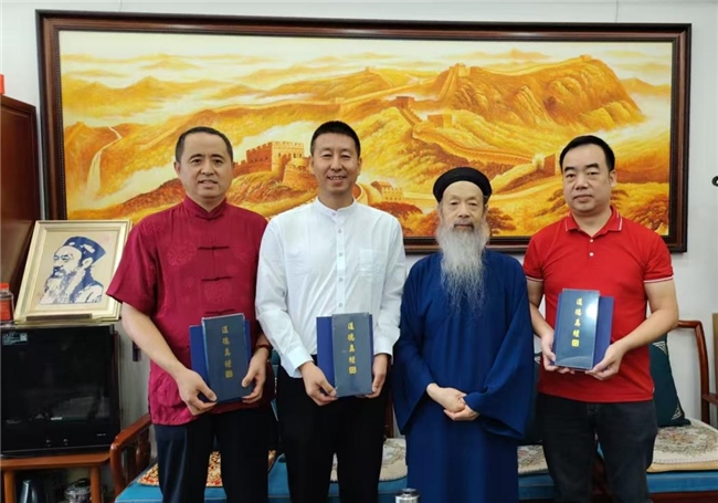 近日,老子道学文化研究会北岳道学分会会长刘高奇、副会长王蓬勃与华夏知古文化院秘书长张铁钢一行,共同拜见了中国道教协会会长李光富。会谈期间,刘高奇一行代表老子道学文化研究会创会会长、中国社会科学院二级教授胡孚琛,向李光富会长转赠了由胡孚琛教授主编的繁体线装版《丹道法诀十二讲》。李光富会长对此表示感谢,并回赠其所著《道德真经》及《修道三百问》。